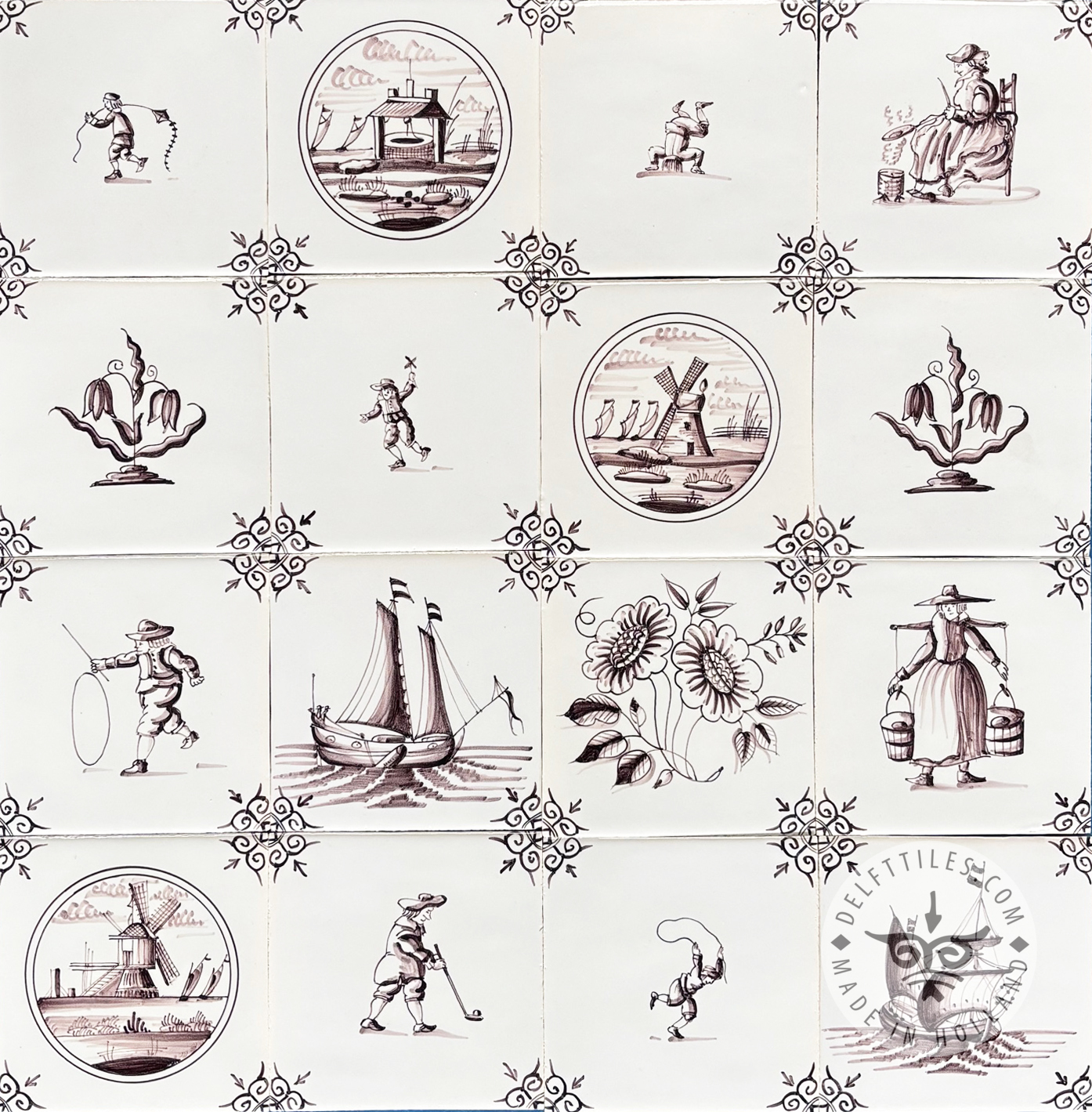 • Hand crafted / painted Dutch Delft Tiles.
